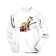 This long-sleeve tee features a reproduced illustration of our beloved duo having a lot of fun! Calvin, the precocious, mischievous, and adventurous six-year-old boy, and Hobbes, his sardonic stuffed tiger was a daily comic strip commonly cited as "the last great newspaper comic."